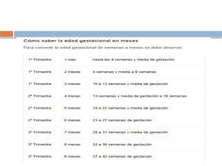 Herrera y Hurtado en cada trimestre de la gestación. En la