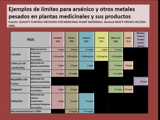 El documento trata sobre el control de calidad de drogas vegetales. Explica que las drogas vegetales ocupan un lugar importante en el mercado farmacéutico y es necesario garantizar su calidad mediante técnicas modernas. Describe los tres pasos principales para el control de calidad: control de identidad, control de calidad y control de pureza, los cuales incluyen ensayos botánicos, físico-químicos y determinación de contaminantes. El objetivo final es confirmar la identidad, valorar la calidad y pureza de las drogas vegetales.