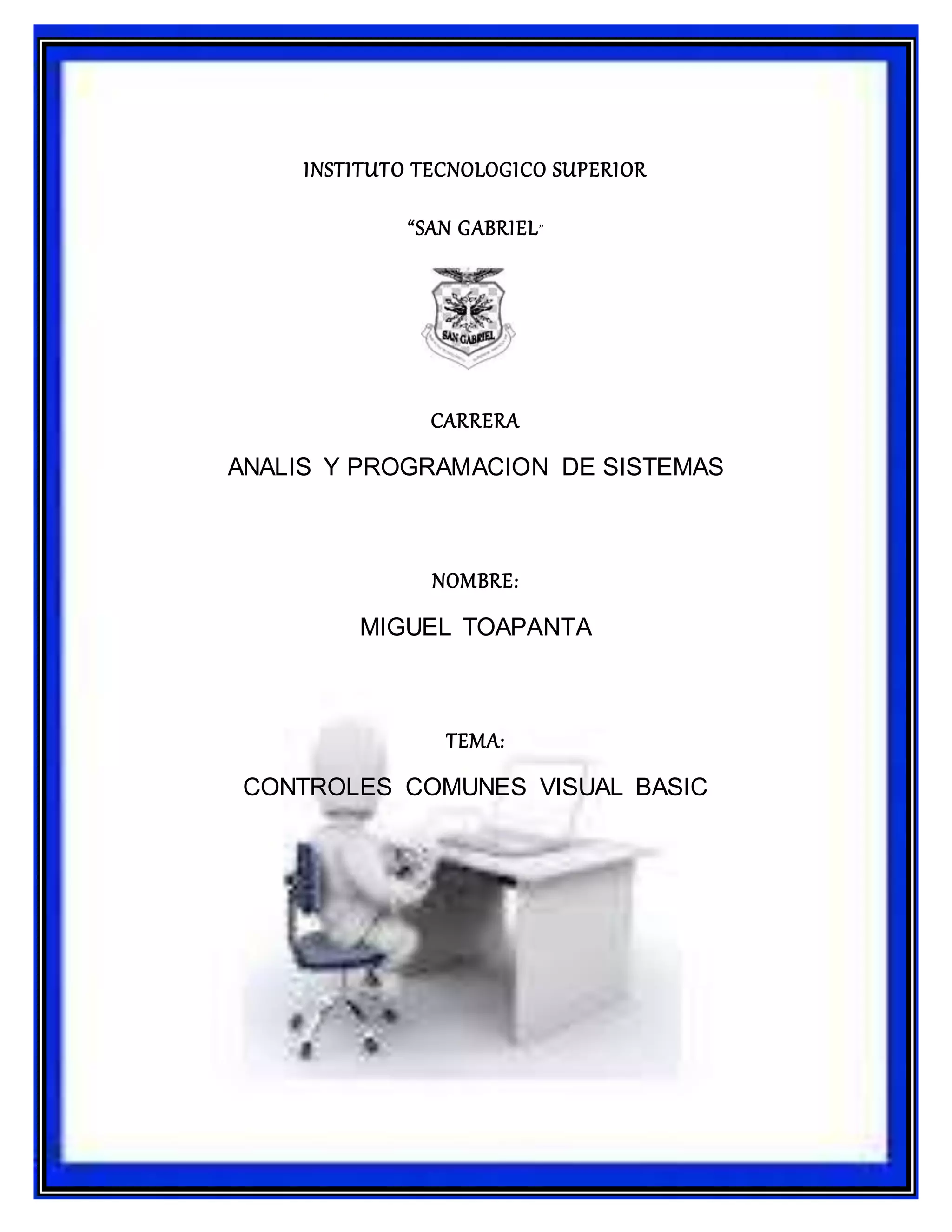 Este documento describe los controles comunes de Visual Basic, incluyendo botones, casillas de verificación, listas desplegables, barras de progreso, botones de opción, cuadros de texto enriquecidos y otros. Cada control tiene propiedades y métodos específicos que permiten personalizar su apariencia y comportamiento para facilitar el desarrollo de aplicaciones.