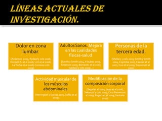 El método Pilates fue desarrollado originalmente por Joseph Hubertus Pilates como un sistema de ejercicios para mejorar la salud física y mental. Se enfoca en el equilibrio y la unidad entre la mente y el cuerpo a través de ejercicios de fuerza y flexibilidad realizados con o sin máquinas de apoyo. Los principios fundamentales incluyen una evaluación inicial, sesiones no competitivas y un enfoque holístico en el estilo de vida.
