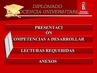 Este documento presenta un diplomado sobre docencia universitaria que aborda el constructivismo. Se definirán los diferentes tipos de constructivismo y sus características, y cómo aplicar sus principios didácticos en el aula universitaria. El objetivo es que los participantes conozcan el constructivismo, analicen su aplicación en la formación de profesionales, y diseñen clases universitarias utilizando estrategias constructivistas.