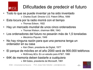 El documento describe la evolución de las tecnologías digitales y de Internet a lo largo de la historia. Explica cómo las capacidades de los ordenadores, el almacenamiento, las redes y las comunicaciones han aumentado drásticamente debido a la convergencia digital. También resume los orígenes de Internet y la World Wide Web y su rápida adopción a nivel masivo.