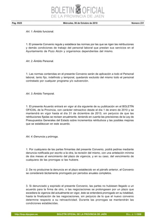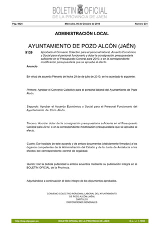 El documento contiene el texto completo del Convenio Colectivo para el personal laboral del Ayuntamiento, el cual regula las condiciones laborales