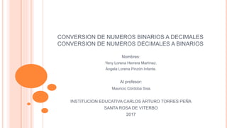 Este documento explica cómo convertir números entre los sistemas binario y decimal. Describe qué son los bits, bytes y números binarios y decimales. Luego detalla los pasos para convertir números binarios a decimales y viceversa, incluyendo números con puntos decimales. Finalmente, incluye una sección sobre el código ASCII.