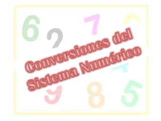 Este documento explica los pasos para convertir números entre los sistemas decimal, binario, octal y hexadecimal. Describe cómo dividir un número decimal repetidamente entre 2 para obtener su equivalente binario, y cómo multiplicar los dígitos binarios por potencias de 2 para obtener el número decimal equivalente. También explica cómo agrupar los dígitos binarios en grupos de 3 o 4 para convertir a octal o hexadecimal, respectivamente.