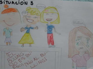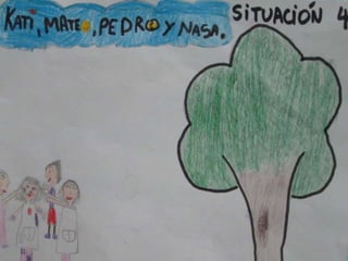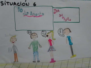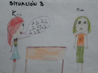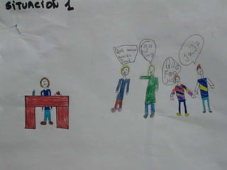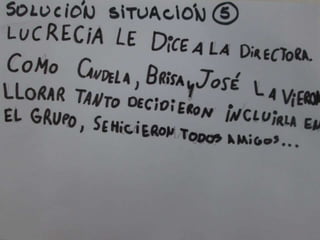 Trabajo realizado por cuarto grado sobre situaciones inteligentes relacionadas con la convivencia escolar.