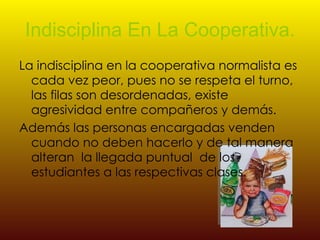 La cooperativa normalista está experimentando problemas de indisciplina crecientes, como no respetar los turnos, formar filas desordenadas y agresividad entre compañeros, mientras que los encargados también venden fuera de horario y alteran la puntualidad de los estudiantes a clase.