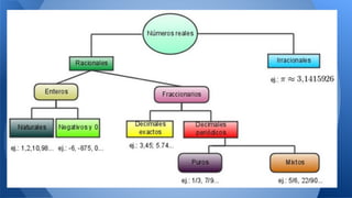 Este documento describe diferentes conjuntos numéricos. Explica que los conjuntos numéricos son agrupaciones de números que comparten propiedades estructurales. Luego describe los conjuntos de números naturales, enteros, racionales e irracionales. Finalmente, clasifica los diferentes tipos de números como naturales, primos, enteros negativos, reales e imaginarios.