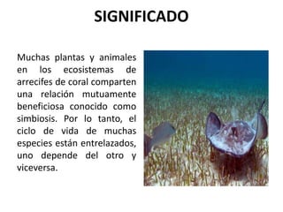 Los arrecifes de coral albergan una gran variedad de plantas como algas, hierba de tortuga y manglares que desempeñan un papel vital en estos ecosistemas. Las algas zooxantelas viven dentro de los corales y les proporcionan nutrientes, mientras que las algas coralinas ayudan a construir el arrecife. La hierba marina y los manglares sirven como filtros que mejoran la calidad del agua y protegen los corales de los sedimentos.