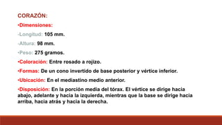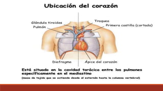 Este documento describe la anatomía y fisiología del corazón y los grandes vasos. Describe las dimensiones, capas, cámaras y funciones del corazón, así como las principales arterias coronarias. También explica brevemente la conducción eléctrica cardíaca, las arterias, venas y capilares.