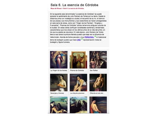 El documento resume un viaje a Córdoba que incluye visitas al Museo Julio Romero de Torres, que alberga obras del pintor cordobés, y a la Mezquita de Córdoba, uno de los monumentos más importantes de la arquitectura islámica en España con más de 1,300 columnas. El viaje también incluye una visita a los patios cordobeses y regresa a Jerez sobre las 22:00 h.