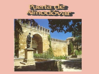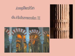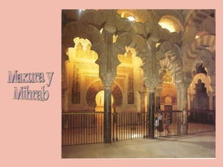 Este documento presenta una línea de tiempo de la historia de Al-Andalus desde el año 711 hasta 1492, destacando los periodos de dominio musulmán, taifas, almorávides y almohades. También describe brevemente algunas características arquitectónicas de la Mezquita de Córdoba como arcos polilobulados y celosías. Finalmente, resume las biografías de dos importantes figuras de Al-Andalus: el médico judío Maimónides y el filósofo Averroes.