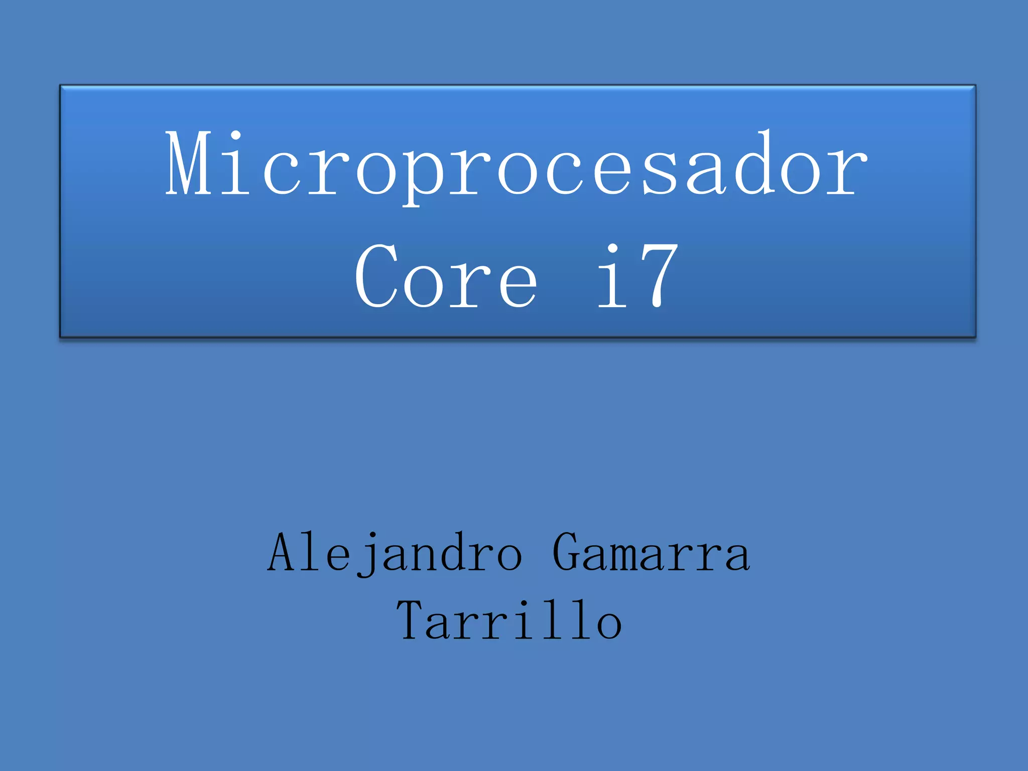 El documento habla sobre el microprocesador Core i7 de Intel. Algunas de sus características clave incluyen el uso de chips Z77, Z75 y H77 compatibles con PCI Express 3.0, transistores más pequeños que permiten un menor consumo de energía, y soporte para memoria DDR3L de baja tensión. El Core i7 también incluye gráficos Intel HD con soporte DirectX 11 y OpenGL 3.1. Algunas desventajas son un alto calentamiento bajo carga máxima, falta de compatibilidad con ECC de memoria, y un