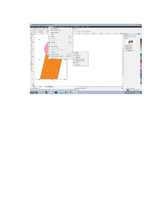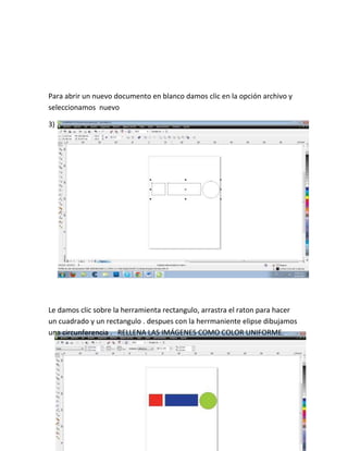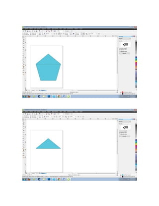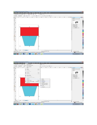 Este documento proporciona instrucciones paso a paso para utilizar diferentes herramientas en CorelDRAW X5 como alinear, distribuir, unir y recortar figuras. Primero se crean figuras básicas como círculos y rectángulos y se rellenan de colores. Luego se enseña cómo alinear y distribuir las figuras, unirlas en un solo objeto, e intersectar y recortar figuras entre sí. El objetivo es practicar el uso de estas herramientas y ver los resultados obtenidos.