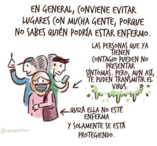 El documento proporciona información sobre el nuevo coronavirus COVID-19, incluyendo sus síntomas, formas de transmisión, medidas de prevención y tratamiento. Explica que los coronavirus son una familia de virus que circulan entre humanos y animales, pudiendo causar enfermedades respiratorias desde un resfriado común hasta otras más graves. El brote actual inició en Wuhan, China, transmitiéndose principalmente a través de gotas de saliva, aunque también se ha extendido a otros países.
