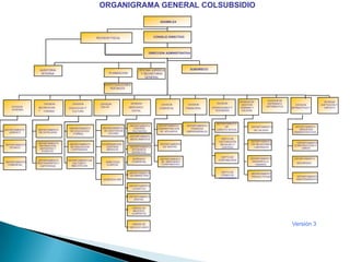 El documento habla sobre la gestión emprendedora de proyectos dentro de las organizaciones como parte de la nueva economía. Implica un espíritu emprendedor dentro de la corporación que puede dar lugar a la innovación y creación de nuevos negocios, conllevando cambios de cultura y diseño organizativo. El organigrama muestra la estructura organizacional de una empresa, con divisiones, departamentos y gerencias que la componen.
