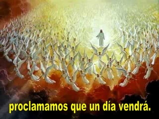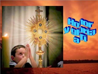 El documento habla sobre la importancia de la Eucaristía como la presencia real de Jesucristo entre nosotros. Explica que en la Eucaristía, Jesús instituyó la nueva y eterna alianza de amor entre Dios y la humanidad sellada con su propia sangre. También destaca la necesidad de que los creyentes respondan a este gran amor de Dios con fe y entrega, asistiendo a la misa y viviendo de acuerdo con los mandamientos de Jesús.