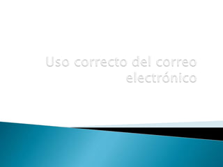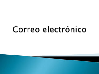 Este documento proporciona información sobre el correo electrónico, incluyendo cómo acceder a una cuenta de correo, las partes principales de una dirección de correo electrónico, los tipos de extensiones de dominio comúnmente usadas, y consejos sobre el uso seguro y efectivo del correo electrónico.
