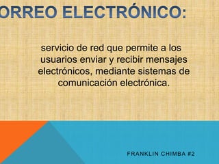 El documento habla sobre el correo electrónico y las normas para su uso adecuado. Explica que el correo electrónico permite enviar y recibir mensajes electrónicos a través de sistemas de comunicación y que se deben establecer normas para su uso eficiente, como indicar claramente los destinatarios, evitar lenguaje ofensivo, no enviar información personal sensible y no utilizarlo para propagar virus o lucro personal. También destaca la importancia de que los mensajes sean positivos, relevantes, claros y que quien los envía sea creíble