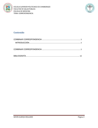 Este documento explica cómo combinar correspondencia en Microsoft Word para crear cartas personalizadas para múltiples destinatarios de forma automática. Describe el proceso de crear un documento maestro de carta y una hoja de datos con información de contacto, y luego usar la función de combinar correspondencia en Word para insertar campos de datos individuales en cada copia personalizada de la carta. Esto permite crear y enviar cartas personalizadas a varias personas de forma eficiente con solo un documento maestro.
