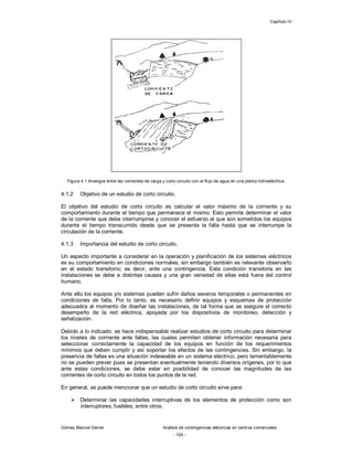 Este documento describe los cortocircuitos en sistemas eléctricos. Explica que un cortocircuito ocurre cuando dos puntos con diferencia de potencial entran en contacto, causando una corriente eléctrica muy alta. Realizar estudios de cortocircuito es importante para seleccionar equipos y protecciones adecuadas. También describe las fuentes que alimentan las corrientes de falla, como generadores y motores, y los tipos más comunes de fallas en instalaciones comerciales como centros comerciales.
