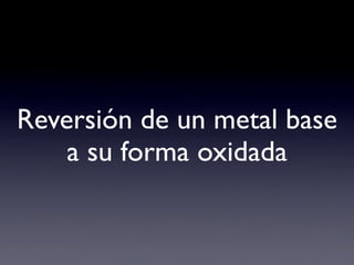 Este documento describe los diferentes tipos de corrosión que afectan los metales, incluyendo la corrosión seca, húmeda, de grietas y galvánica. Explica que la corrosión es un proceso electroquímico que involucra la pérdida de electrones en el ánodo y la ganancia de electrones en el cátodo. También discute cómo la corrosión afecta los materiales dentales y las medidas para prevenirla, como usar aleaciones nobles y aislar los materiales de electrolitos.