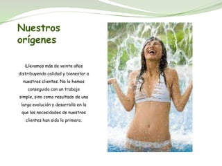 Este documento presenta la historia de Cosmiesthetic, una compañía de cosméticos naturales y vegetales fundada hace más de 20 años. Enumera a los cuatro socios fundadores y describe cómo la compañía se ha desarrollado a lo largo de los años para satisfacer las necesidades de los clientes. También destaca que Cosmiesthetic investiga y desarrolla nuevos ingredientes activos cada año para garantizar la eficacia de sus productos, y que obtiene dichos ingredientes del reino vegetal de forma natural y respetuosa con el medio ambiente