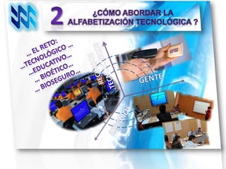 Este documento trata sobre la alfabetización tecnológica y digital. Explica que la alfabetización tecnológica implica desarrollar conocimientos y habilidades cognitivas e instrumentales relacionadas con el uso de la información a través de medios tecnológicos. También discute conceptos como la e-ciudadanía, la sociedad de la información y la importancia del transalfabetismo para funcionar en la sociedad actual.