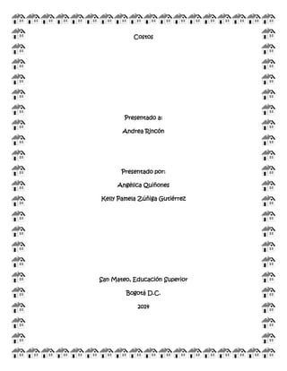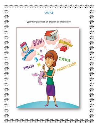 Este documento presenta un análisis de costos de producción de bultos de harina. Explica los tipos de costos fijos, variables y totales, y cómo se calculan los costos marginales, fijos marginales, variables marginales y totales marginales. Luego muestra una tabla con los valores de costos fijos, variables y totales para diferentes niveles de producción de bultos de harina, así como los cálculos de los costos marginales respectivos.
