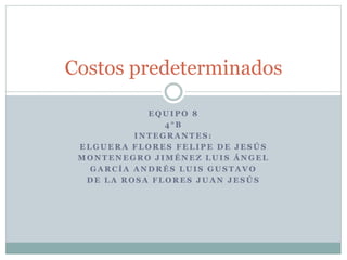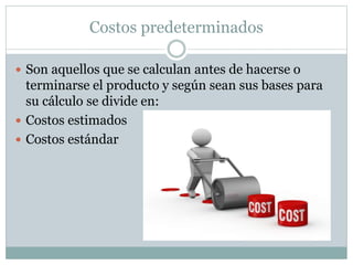 Este documento presenta una breve introducción sobre los costos predeterminados y específicamente sobre los costos estimados. Define los costos estimados como aquellos que se calculan antes de producir un artículo basados en conocimientos empíricos sobre la industria. Explica que tienen como fin pronosticar el valor y cantidad de los costos de producción para cotizar con clientes de manera aproximada, y que es importante ajustarlos con datos históricos.