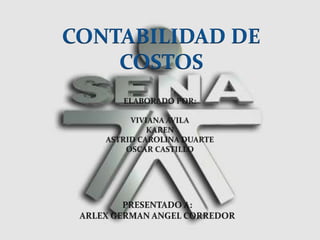 El documento habla sobre los conceptos básicos de contabilidad de costos, incluyendo la clasificación de costos por su función, periodo y grado de variabilidad. También explica conceptos como costo unitario, total, fijo, variable, primario y de conversión. Finalmente, cubre temas como punto de equilibrio, presupuestos y su proceso, y control de materia prima e inventarios.