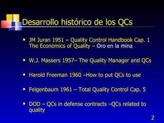 Este documento describe los conceptos y clasificaciones de los costos de calidad. Explica que los costos de calidad incluyen costos de prevención, evaluación, falla interna y falla externa. Además, detalla que los costos de calidad representan la diferencia entre los costos reales de un producto y los costos si no hubiera defectos. Finalmente, enfatiza que una gestión efectiva de los costos de calidad puede ayudar a las organizaciones a mejorar la calidad y reducir costos a través de un enfoque de prevención.