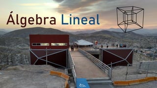 Este documento presenta la información sobre un curso de Álgebra Lineal. Incluye detalles sobre el profesor, las competencias del curso, el contenido (como sistemas de numeración, álgebra, ecuaciones, álgebra lineal), la evaluación por competencias, y la bibliografía. El aprendizaje se describe como una actividad colaborativa donde la tecnología juega un papel como herramienta de apoyo.