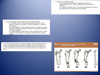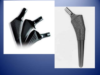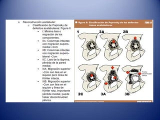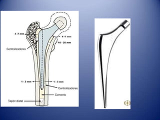 Este documento trata sobre la coxartrosis y el tratamiento quirúrgico de la artroplastia de cadera. La coxartrosis es una enfermedad degenerativa de la articulación de la cadera que puede ser primaria u originada por traumas u otras causas. El tratamiento quirúrgico incluye la artroplastia parcial, de superficie o total de cadera, dependiendo de los casos. Las prótesis de cadera pueden presentar complicaciones como aflojamiento, infección, luxación, fracturas u otras lesiones.