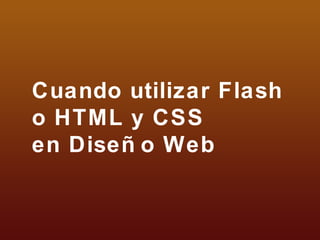 El documento discute la elección entre utilizar estándares web como HTML y CSS y Adobe Flash en el diseño web, destacando la importancia de un código semánticamente correcto y la accesibilidad del contenido. Se plantea que, además de la estética, un sitio debe comunicar efectivamente, ser usable, indexable y causar emociones. También se menciona la responsabilidad ética de los diseñadores en la calidad de su trabajo.