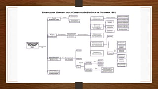La constitución política de Colombia, promulgada el 4 de julio de 1991, es la actual carta magna del país que derogó la constitución de 1886, y se le conoce también como la 'constitución de los derechos humanos'. Su misión es mostrar los deberes y derechos, informando sobre las prohibiciones y protegiendo a la familia a través de normas. Los principales actores en su elaboración fueron Álvaro Gómez Hurtado, Horacio Serpa y Antonio Navarro.