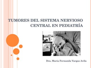 Este documento resume los tumores del sistema nervioso central más comunes en pediatría, incluyendo su incidencia, factores de riesgo, clasificación, manifestaciones clínicas, diagnóstico y tratamiento. Describe tumores como astrocitomas, oligodendrogliomas, ependimomas, medulloblastomas, gangliogliomas y glioblastoma multiforme. Resalta que los tumores ocupan el segundo lugar en frecuencia de neoplasias infantiles y su mortalidad es de 45%, afectando principalmente a lactantes y menores de 7 años.