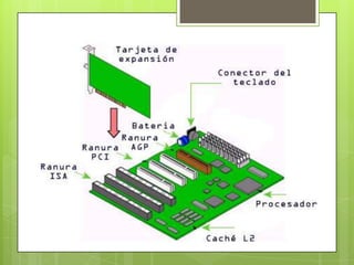Este documento presenta información sobre la CPU (unidad central de procesamiento), incluyendo su función como el componente principal que procesa datos y ejecuta instrucciones en una computadora, y cómo ha evolucionado de placas de circuitos grandes a chips diminutos. También describe conceptos clave como la velocidad de la CPU medida en megahertz y gigahertz, y las unidades lógicas que componen la CPU.