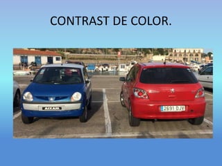 El documento habla sobre diferentes técnicas para crear imágenes, incluyendo contrastes de color, ángulos frontales y de tres cuartos, ángulos laterales y aberrantes, planos conjuntos, primer plano, plano americano y general, y diferentes tipos de iluminación como luz natural difusa y directa e iluminación artificial difusa y directa. También menciona contraluces y ángulos zenitales.
