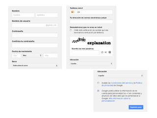 Este documento describe los pasos para crear una cuenta de correo electrónico en Gmail: 1) Acceder a www.gmail.com o www.google.com, 2) Completar el proceso de registro para crear una cuenta, 3) Iniciar sesión en la nueva cuenta de Gmail.