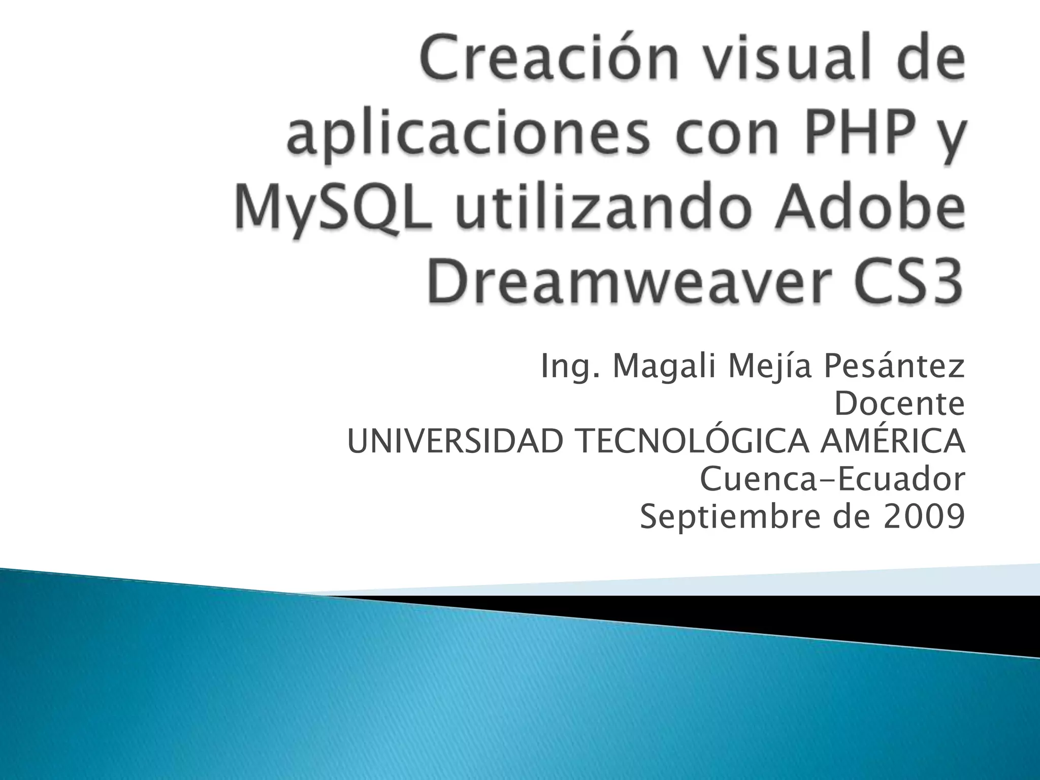 Este documento describe cómo crear aplicaciones web dinámicas con PHP y MySQL usando Adobe Dreamweaver CS3. Explica cómo agregar funcionalidad para insertar, actualizar y eliminar registros de una base de datos, incluyendo la creación de formularios, páginas maestras/detalle y el uso de objetos de datos. También cubre temas como la lógica para eliminar registros y la creación de páginas de búsqueda, resultados y actualización/eliminación. El objetivo es enseñar al lector a desarrollar aplicaciones