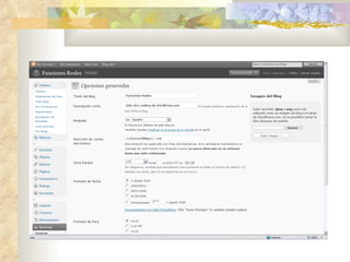 Este documento proporciona instrucciones paso a paso para crear un blog en WordPress.com. Explica cómo crear una cuenta de usuario, generar un nuevo blog eligiendo un nombre y dirección URL, y personalizar la apariencia y configuración del blog mediante la selección de un tema y la modificación de opciones y privacidad.