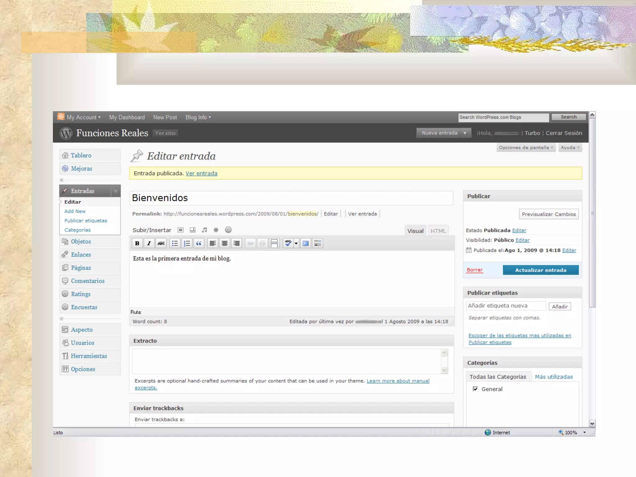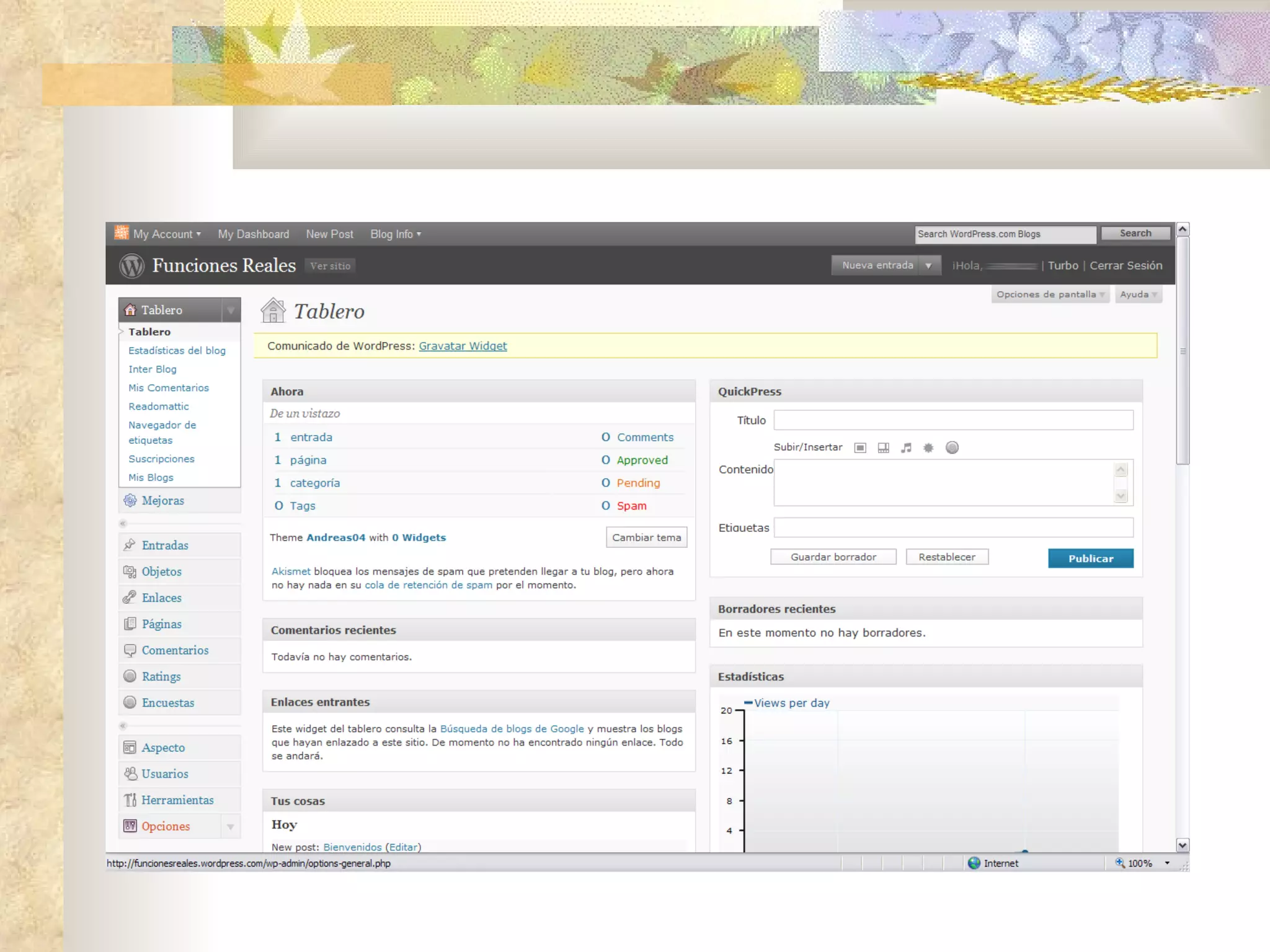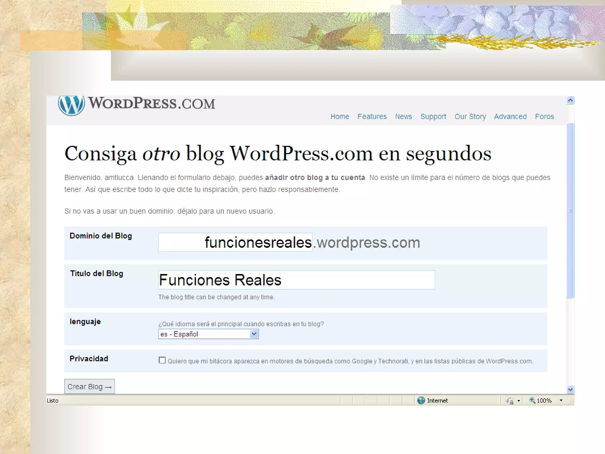 Este documento proporciona instrucciones paso a paso para crear un blog en WordPress.com. Explica cómo crear una cuenta de usuario, generar un nuevo blog eligiendo un nombre y dirección URL, y personalizar la apariencia y configuración del blog mediante la selección de un tema y la modificación de opciones y privacidad.