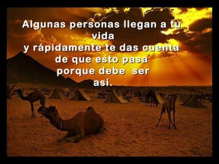 Este documento habla sobre cómo las personas y experiencias que encontramos en la vida, tanto buenas como malas, nos ayudan a descubrir nuestro potencial y fortaleza interior. Aunque a veces pasan cosas dolorosas, éstas nos enseñan lecciones valiosas sobre perdón, confianza y amor. La vida está llena de oportunidades para aprender y crecer, por lo que debemos apreciar cada momento y conversación, sentirnos bien y creer en nosotros mismos.