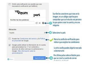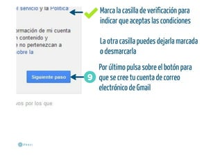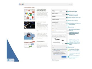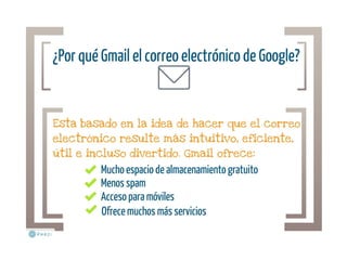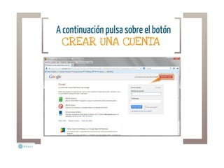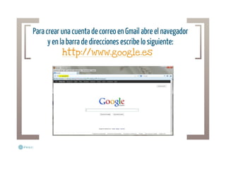 Presentación sobre cómo crear una cuenta de correo electrónico en Gmail de Google, incluye vídeo explicativo de Youtube al final.