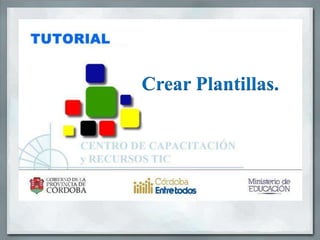 Una plantilla es un modelo o patrón para crear nuevos documentos que guarda internamente el formato utilizado. Crear plantillas permite ahorrar tiempo y esfuerzo al incluir secciones recomendadas y texto obligatorio. Se pueden crear plantillas desde una plantilla en blanco, a partir de un documento existente o basada en otra plantilla ya creada.