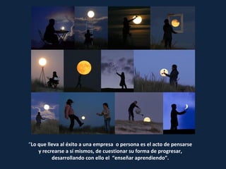 El documento habla sobre el trabajo de Crear.Ser en la formación y capacitación de personas para promover el crecimiento personal y organizacional. Ofrece programas y seminarios sobre temas como el coaching, liderazgo, comunicación y trabajo en equipo, con el objetivo de contribuir al desarrollo de las personas y las organizaciones. La fundadora es licenciada en psicología y cuenta con amplia experiencia en la capacitación de individuos.