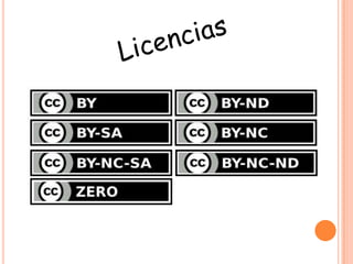Creative Commons es una organización sin fines de lucro con sede en Mountain View, California, que permite compartir y usar creatividad y conocimiento a través de instrumentos jurídicos gratuitos como las licencias Creative Commons. Estas licencias, inspiradas en la licencia GPL, permiten a los autores especificar si otros pueden usar sus obras para fines comerciales u otros propósitos.