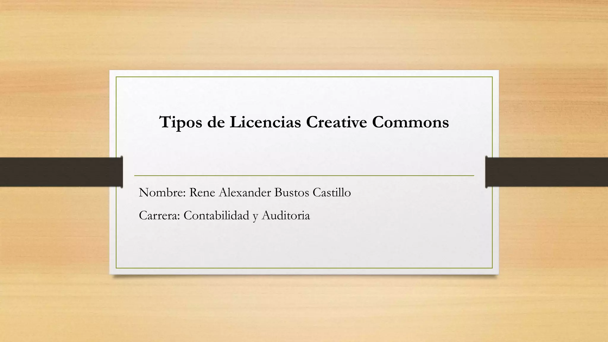 Rene Alexander Bustos Castillo es un estudiante de Contabilidad y Auditoria que está interesado en los tipos de licencias Creative Commons que permiten compartir obras con diferentes niveles de permisos.