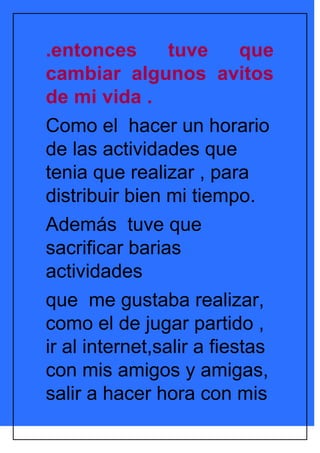 El autor tuvo dificultades aprendiendo matemáticas en la escuela. Después de graduarse, se dio cuenta que no sabía casi nada de matemáticas. Para mejorar, tuvo que cambiar sus hábitos como hacer un horario y sacrificar tiempo de ocio para estudiar. También se volvió autodidacta, transcribiendo fórmulas y practicándolas diariamente. Finalmente, asistió a una academia para aprender temas difíciles y dominó casi todos los temas de matemáticas a través de su esfuerzo y dedicación